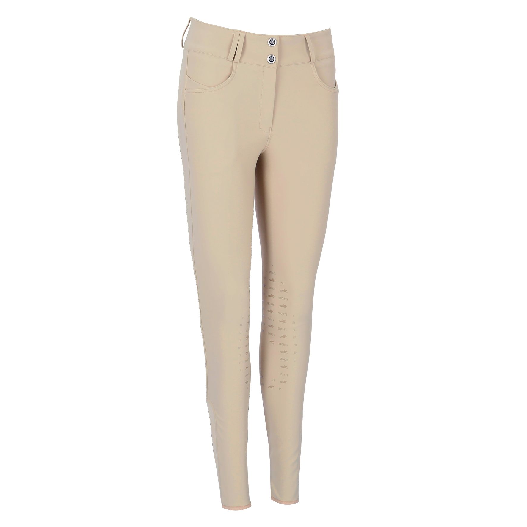 Ці елегантні жіночі бриджі преміум-класу поєднують стиль і функціональність на найвищому рівні. Високий пояс із двома ґудзиками з логотипом не тільки забезпечує надійну фіксацію, але й надає бриджам сучасного спортивного вигляду. Шлевки для ременя дозволяють додатково носити підібраний ремінь для створення індивідуального образу. Для оптимальної фіксації в сідлі бриджі оснащені накладками на колінах із силіконовим принтом, що запобігає ковзанню. Практичні кишені спереду та формуюча вставка ззаду підкреслюють продуманий дизайн. Непомітний силіконовий логотип на лівій штанині стильно доповнює загальний вигляд.
